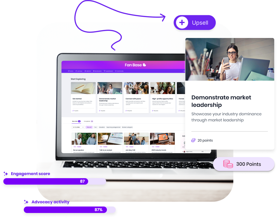 Fine-tune gamification mechanics for every program type and audience. Configure rewards, leaderboards, and recognition to match your audience — from C-suite executives to power users — and keep advocates motivated and active.
